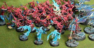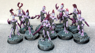 Daemonettes of Slaanesh - The 2nd most popular troop choice and probably the most popular summoned troop, daemonettes are solid. Considering I built a whole army around them, they better be. They still lack in one major area -- assault grenades. They're supposed to be lithe and graceful, they certainly shouldn't drop to I1 just because of some rocks in the way. I'd even take a point increase to 10ppm for this. It's the biggest weakness of a Slaanesh army. The dirty secret to defeating Slaanesh is to just stand in cover and shoot them until they assault you, then easily kill them before they get to swing.